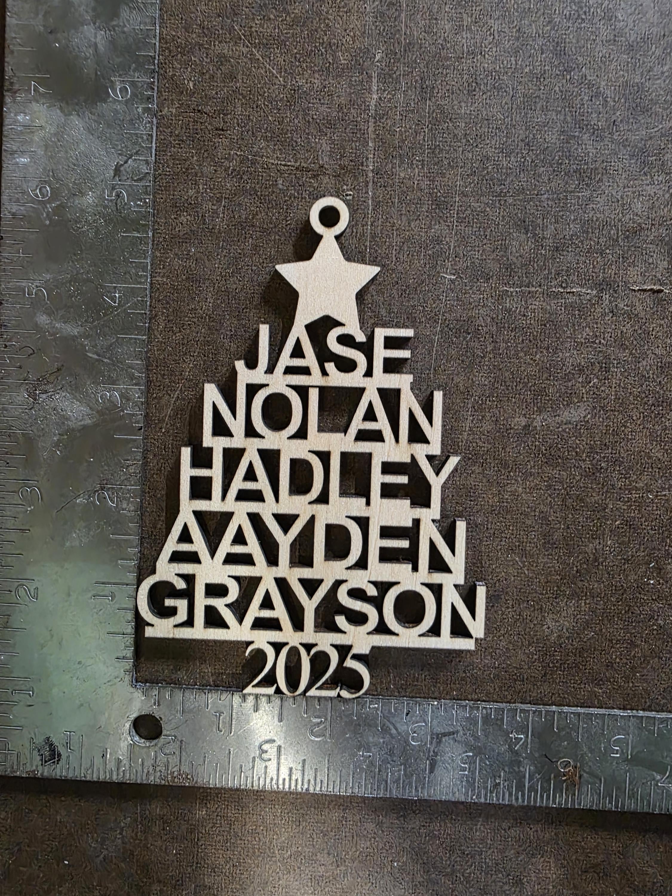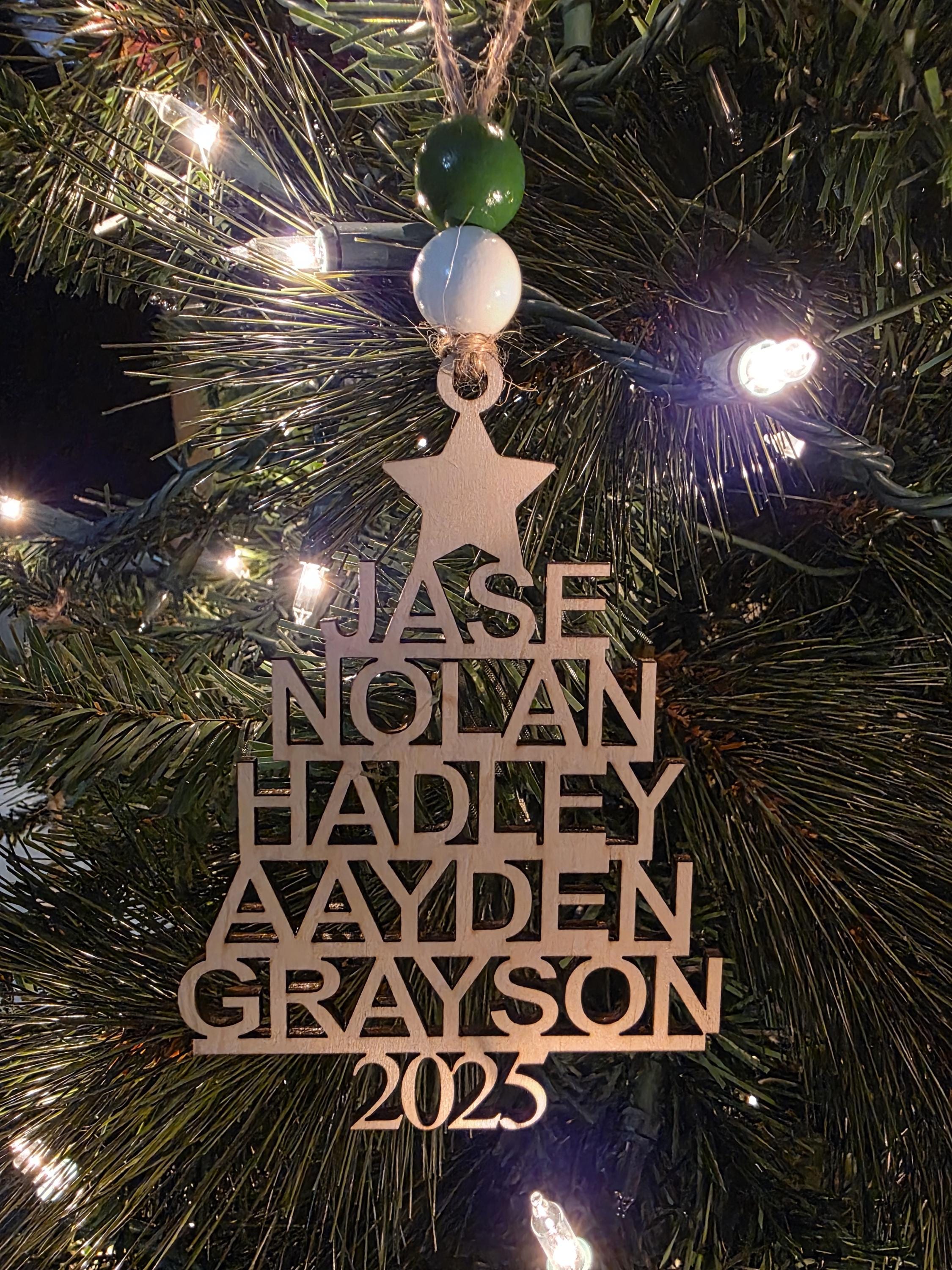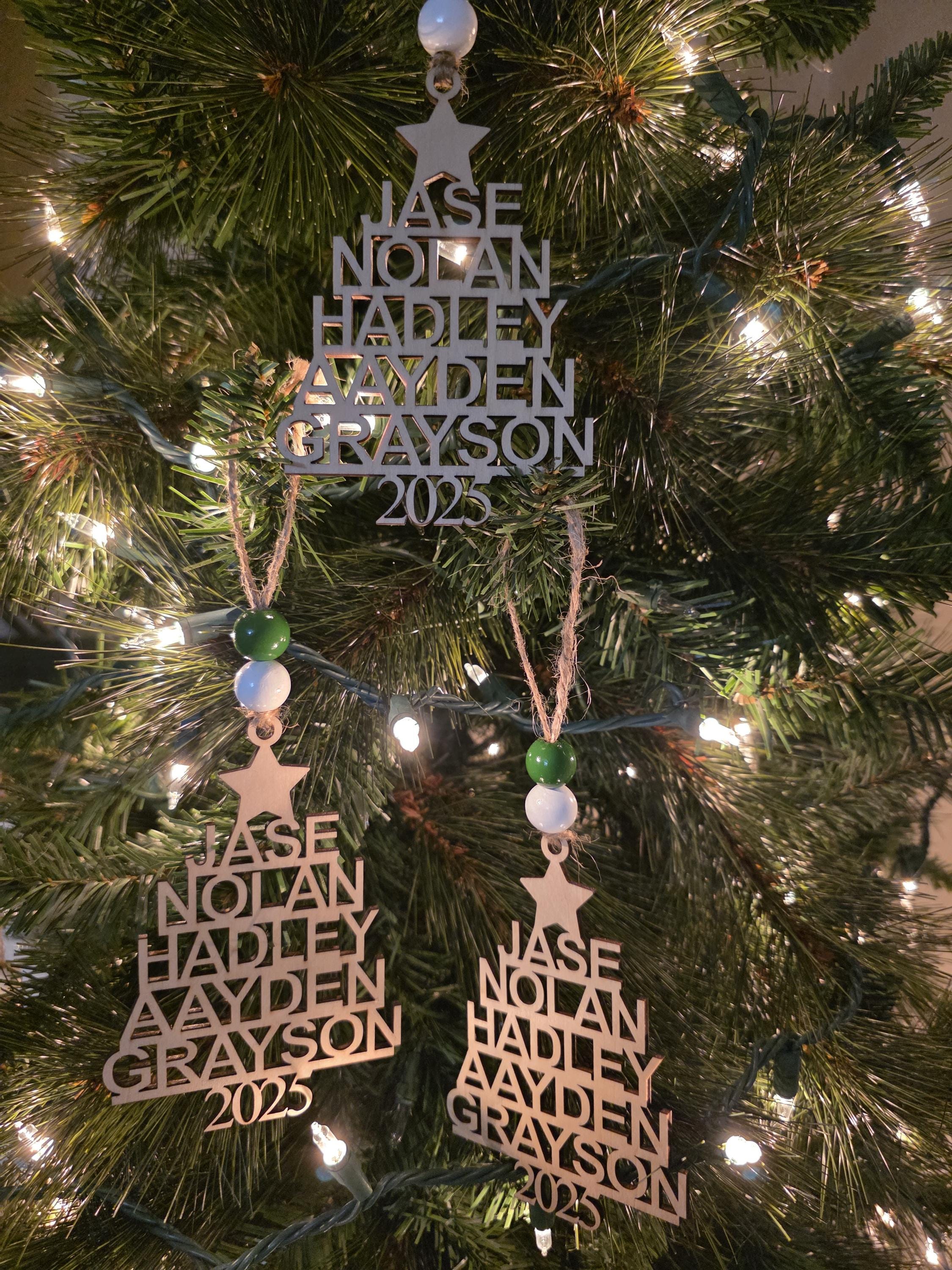 Turn your family into a beautiful keepsake tree! This delicate laser-cut ornament features your loved ones’ names gracefully connected to form a tree shape – a heartfelt symbol of love, growth, and togetherness that looks stunning on any Christmas tree.