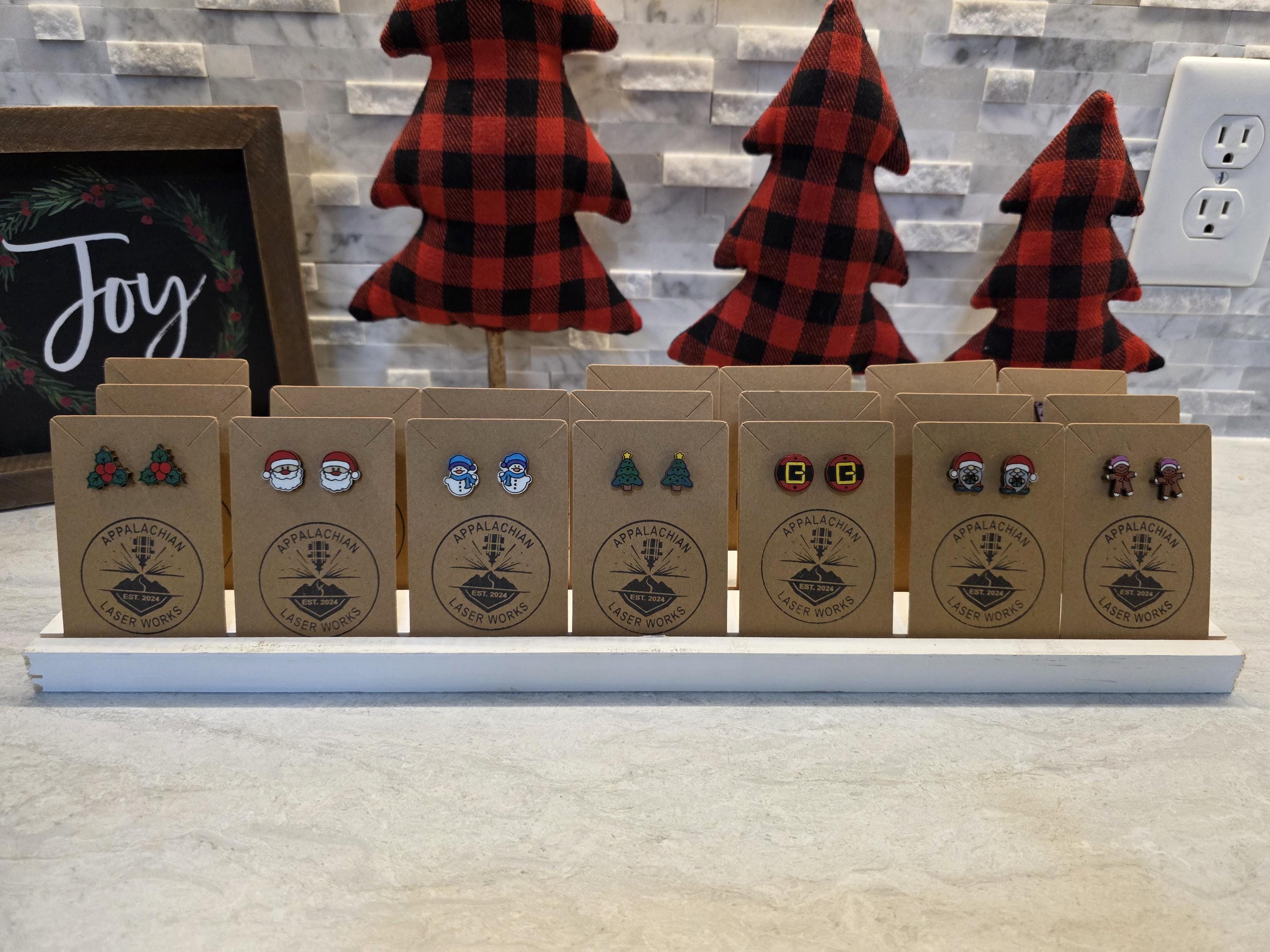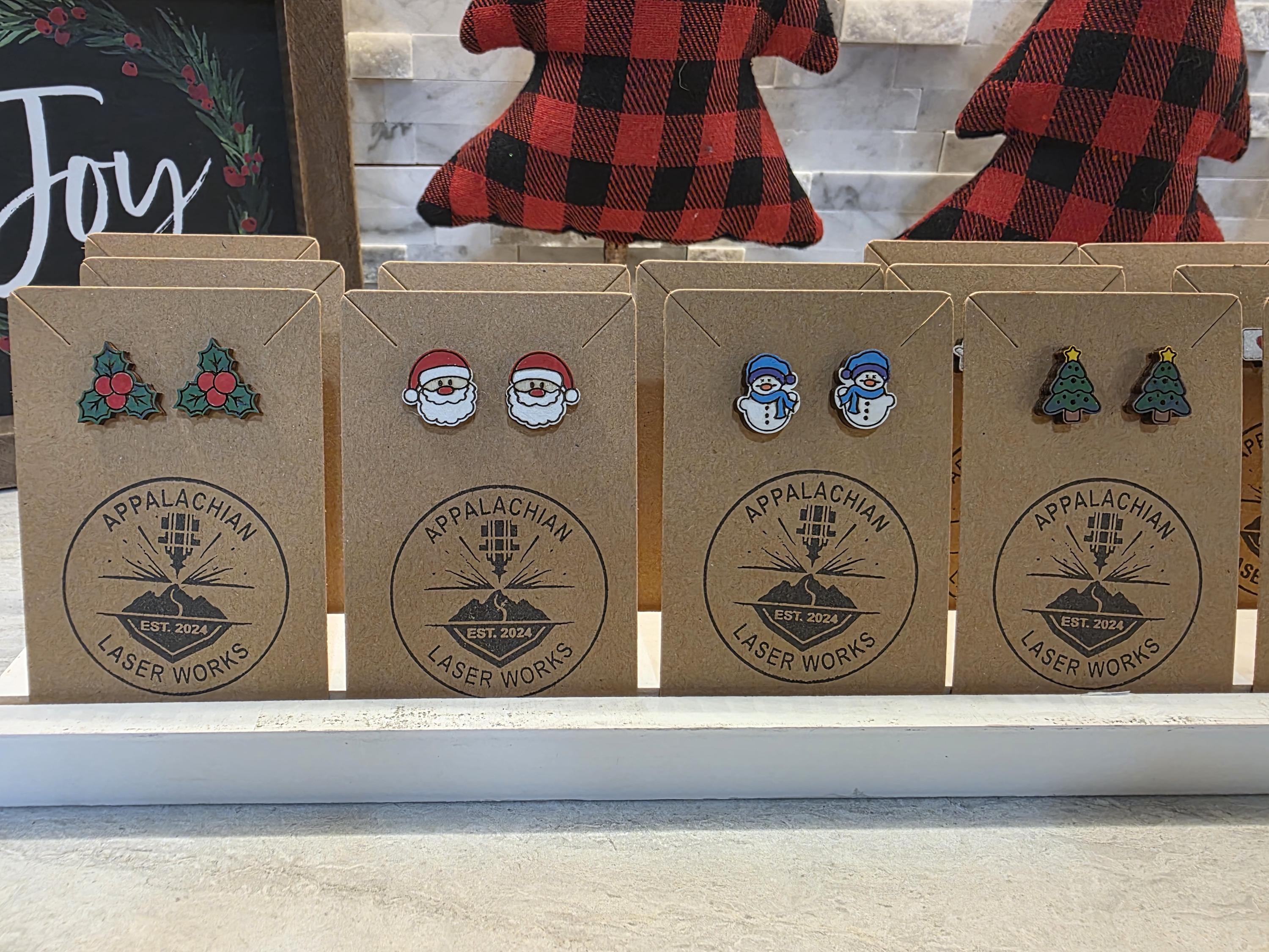 #ChristmasEarrings #HandmadeHoliday #LaserCutJewelry #StockingStuffers #HolidaySparkle