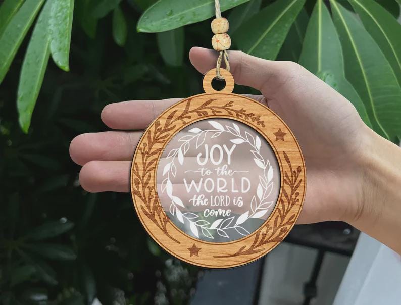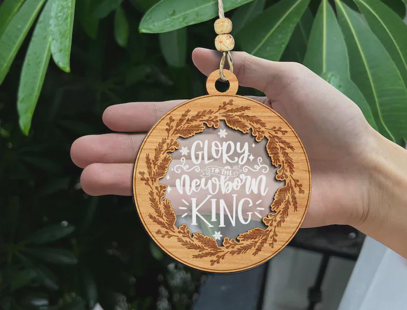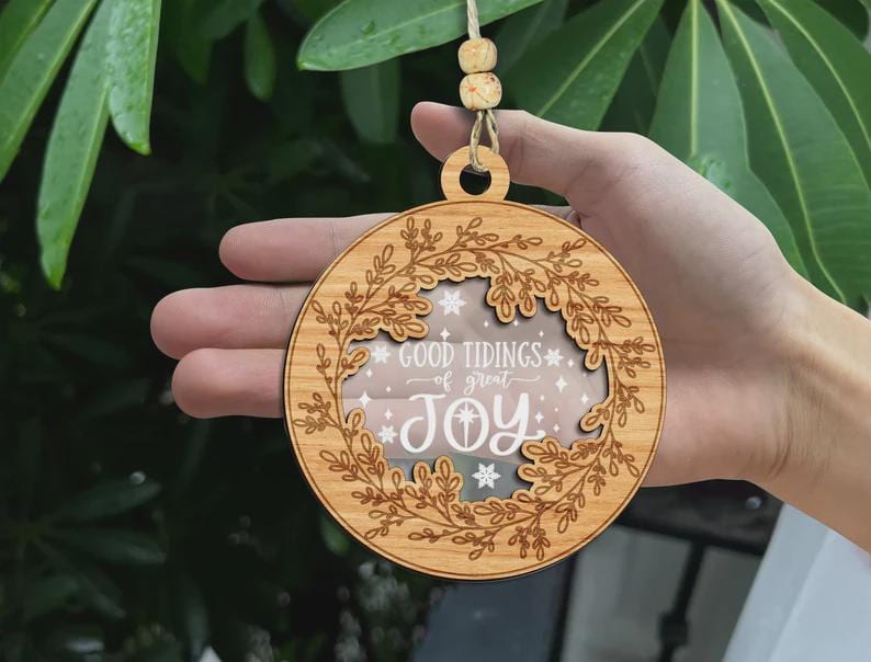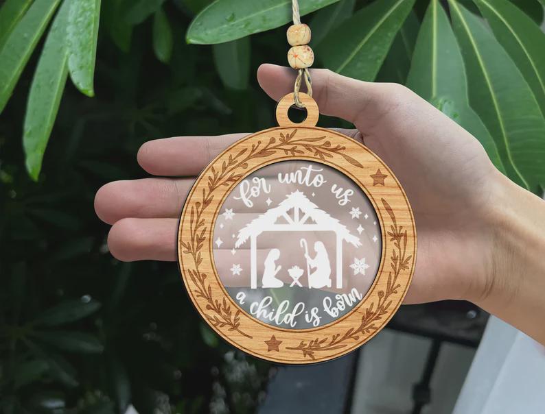 The etched acrylic catches the twinkling Christmas lights like stained glass, while the warm wood adds a timeless, heirloom feel. These aren’t just ornaments – they’re little reminders of the reason for the season.