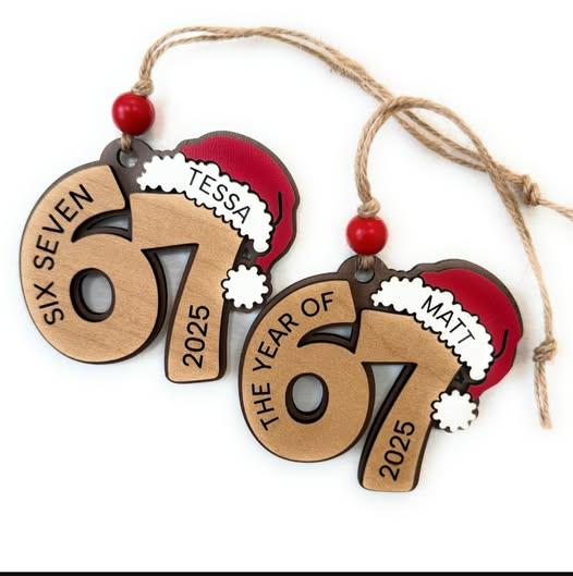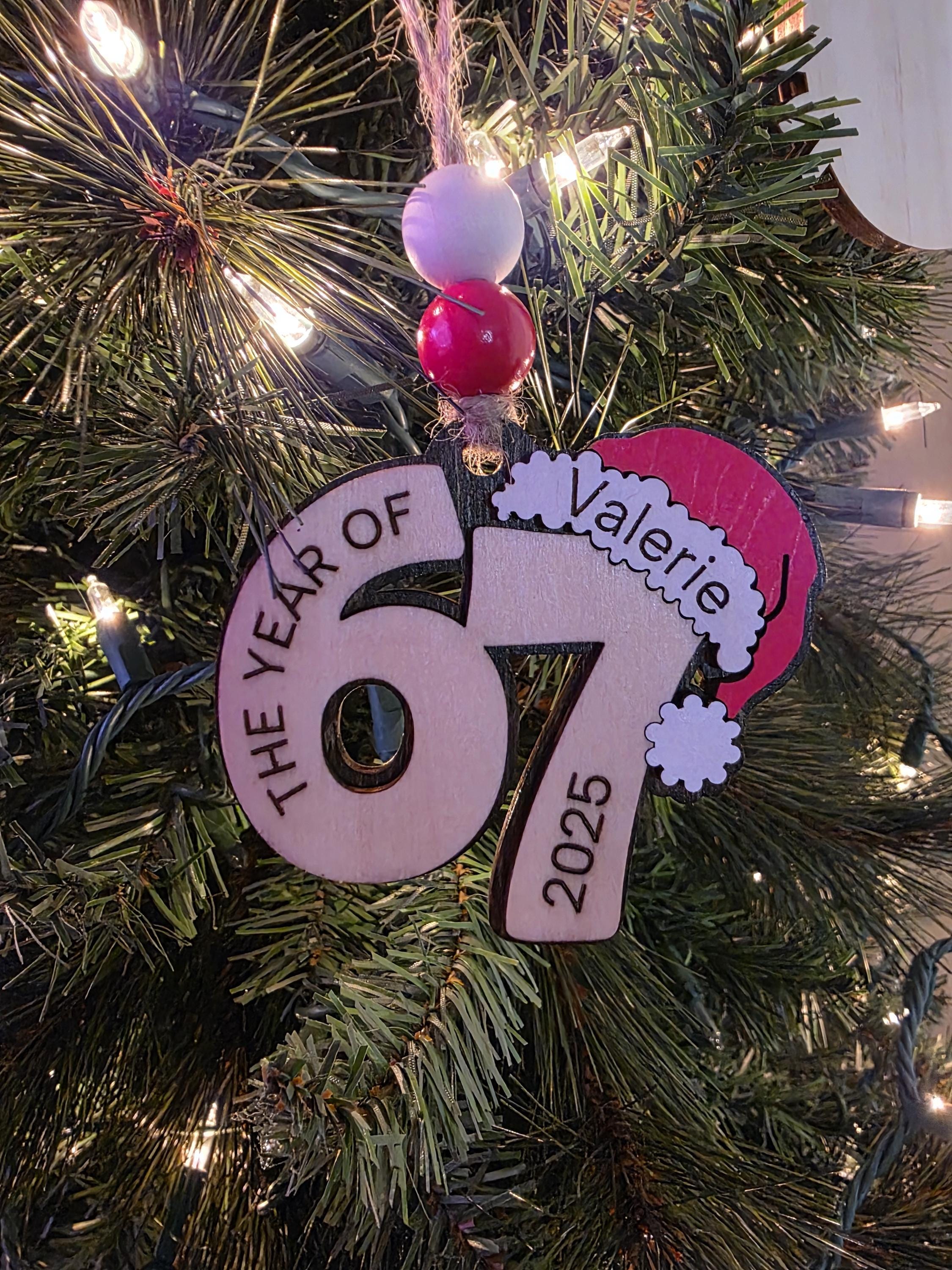 Ride the ultimate 2025 wave with this hilarious personalized "67" ornament – the must-have nod to the viral "six-seven" meme that's got kids (and now everyone) yelling it in classrooms, courts, and TikTok feeds!