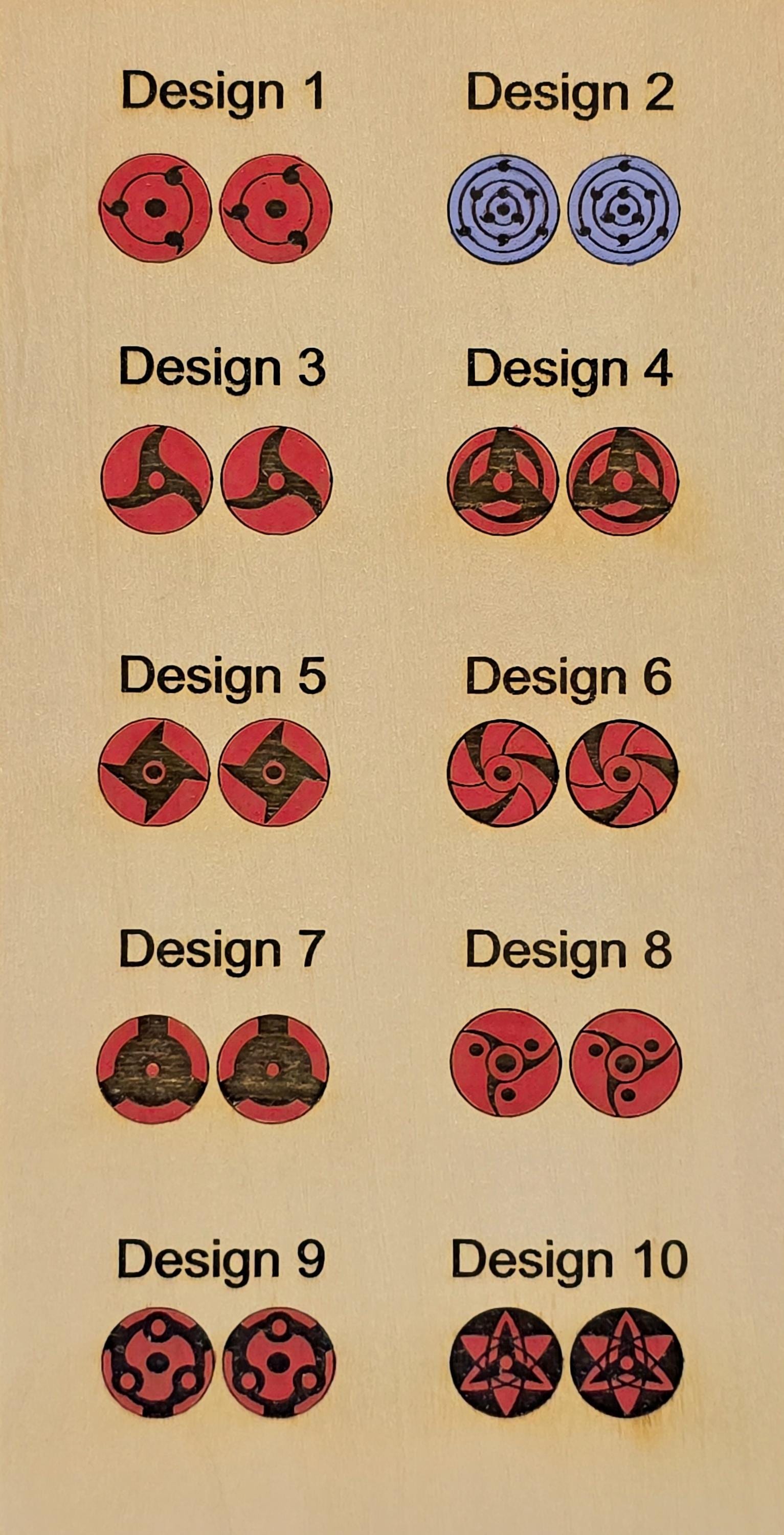 Classic Sharingan, Multiple swirl designs, every tiny detail is painted by hand and sealed with multiple layers of glossy, protective varnish. No prints, no stickers—just pure artisan love for the Hidden Leaf’s most feared doujutsu.