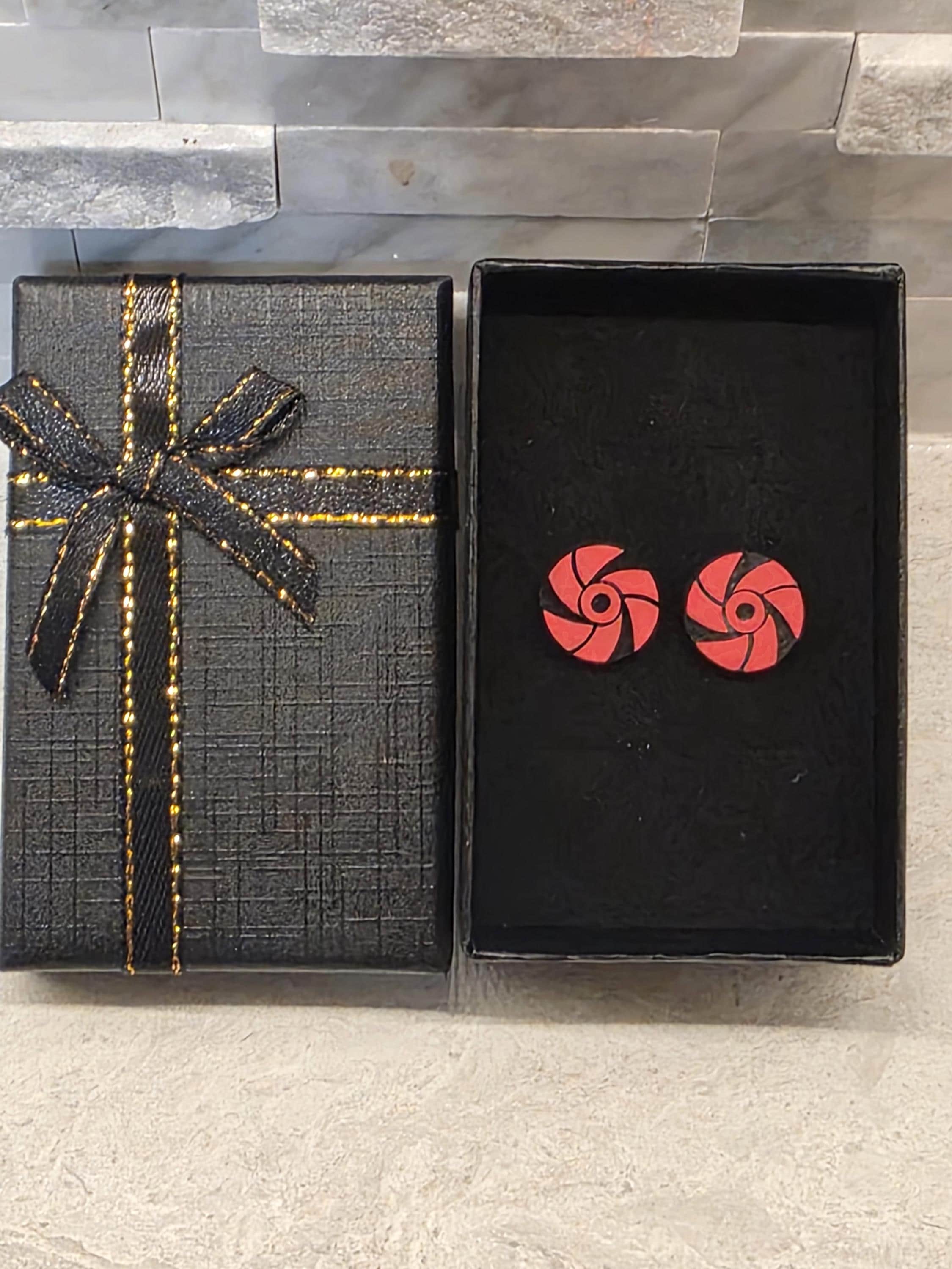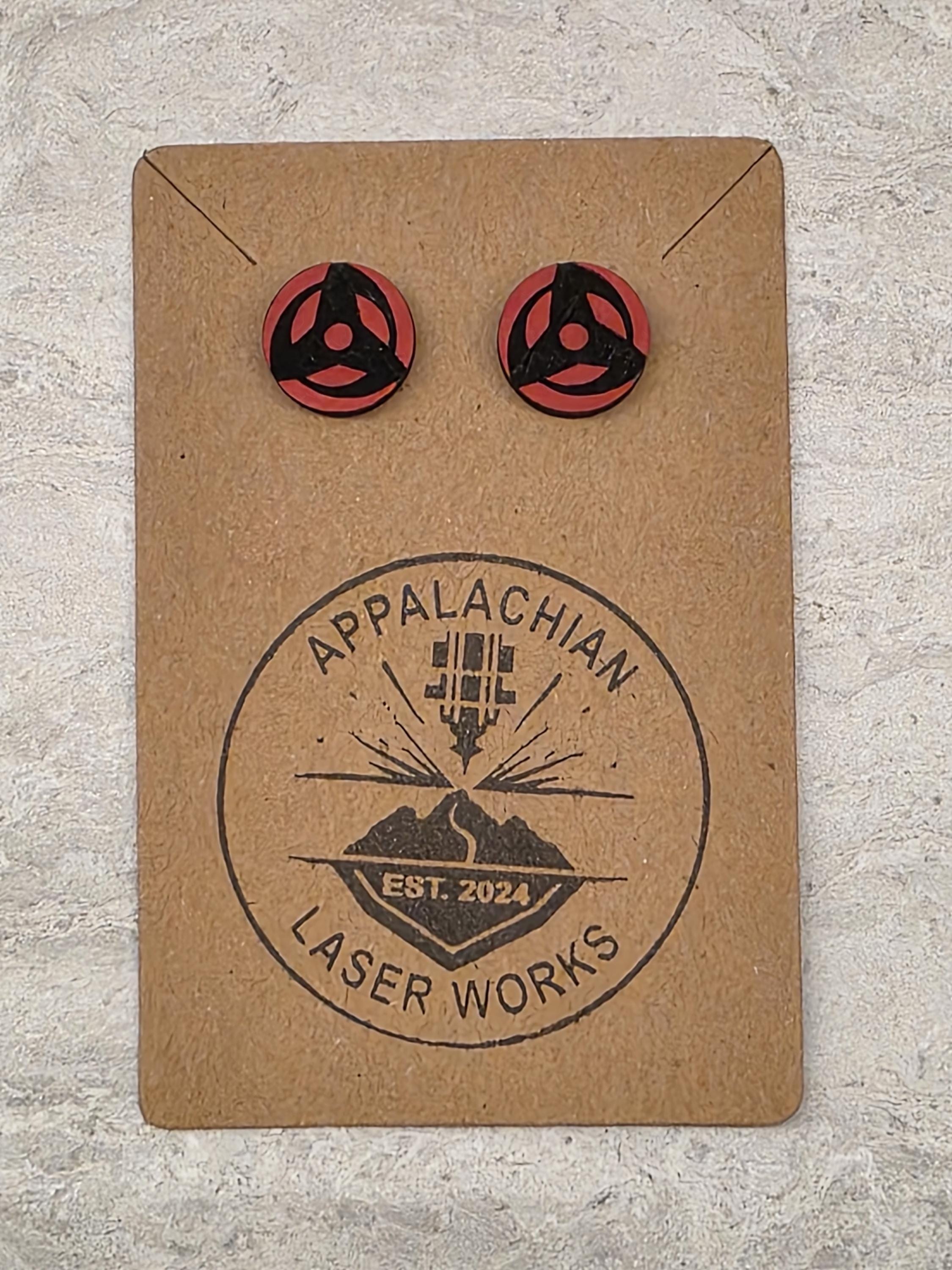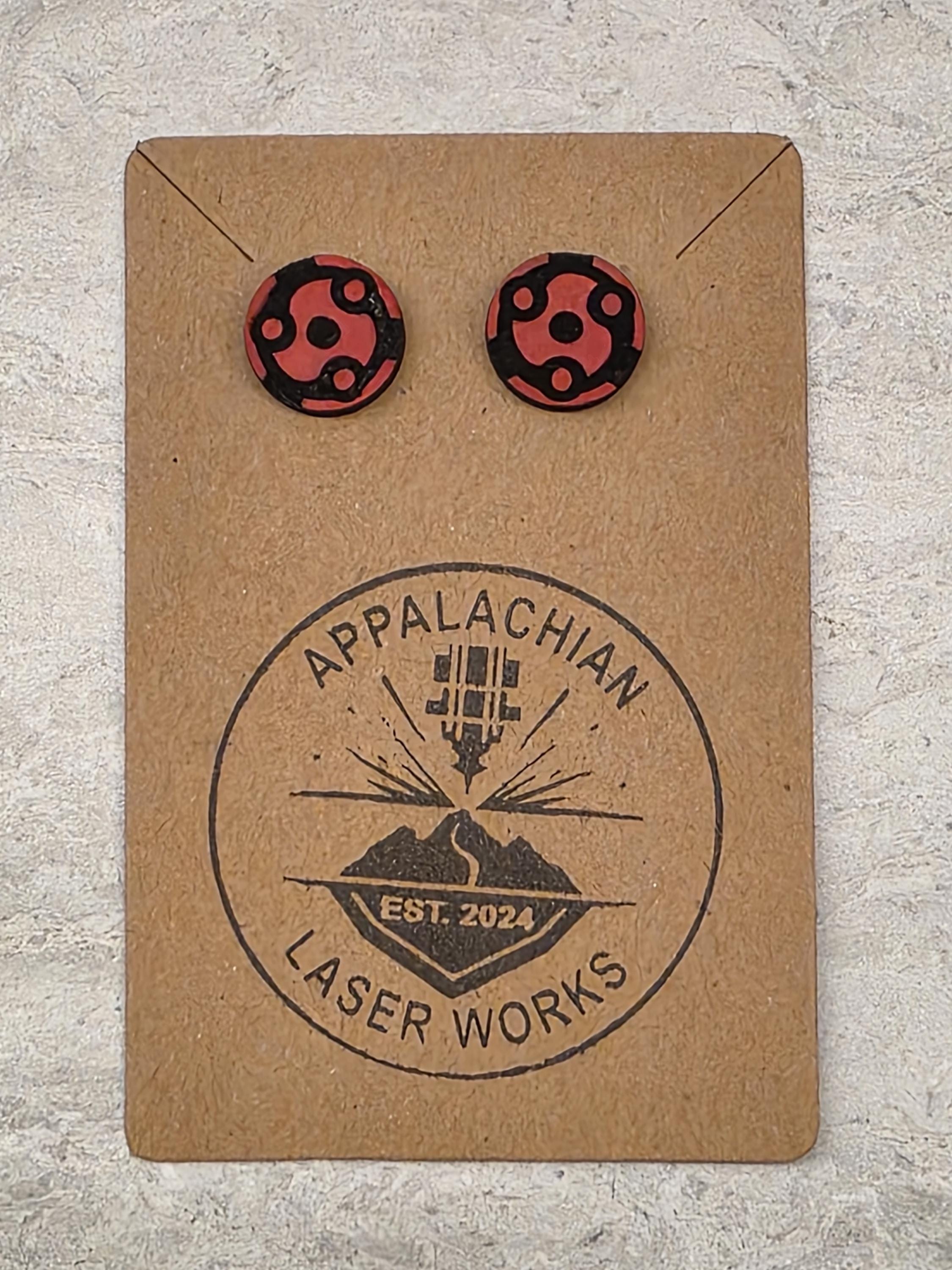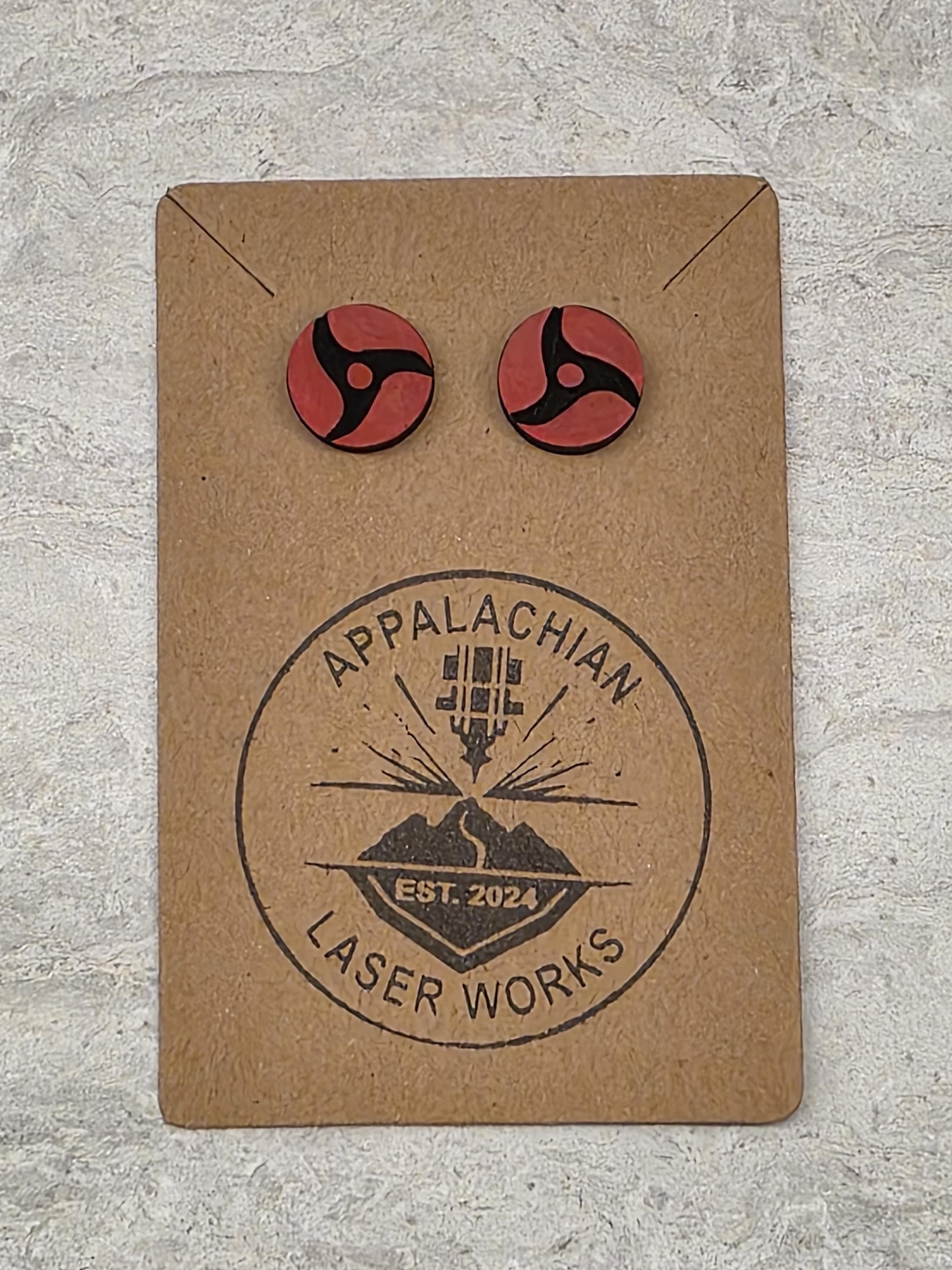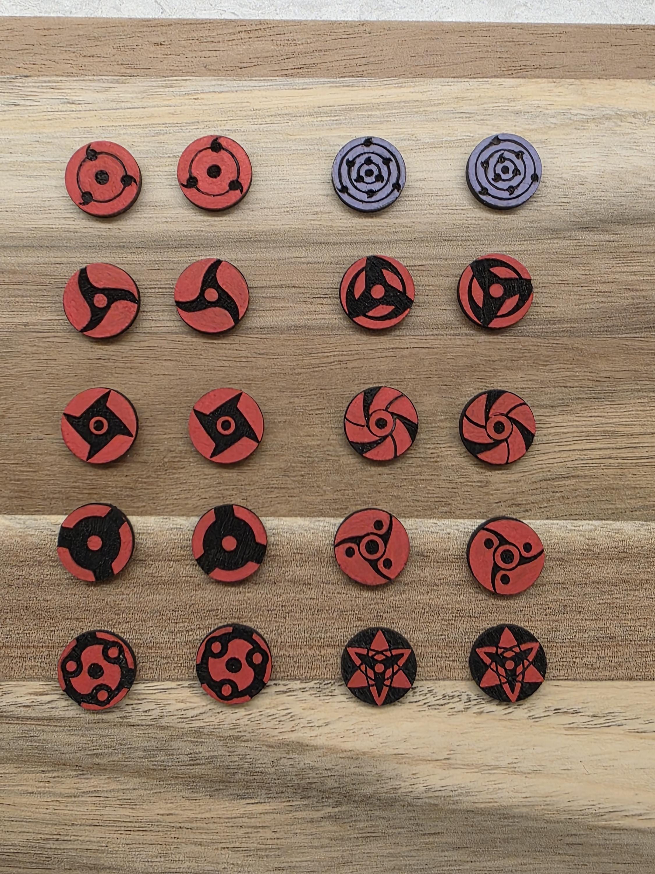 🌸 Handmade Wooden Sharingan Earrings – Hand-Painted Naruto Shippuden Fan Art 🌸