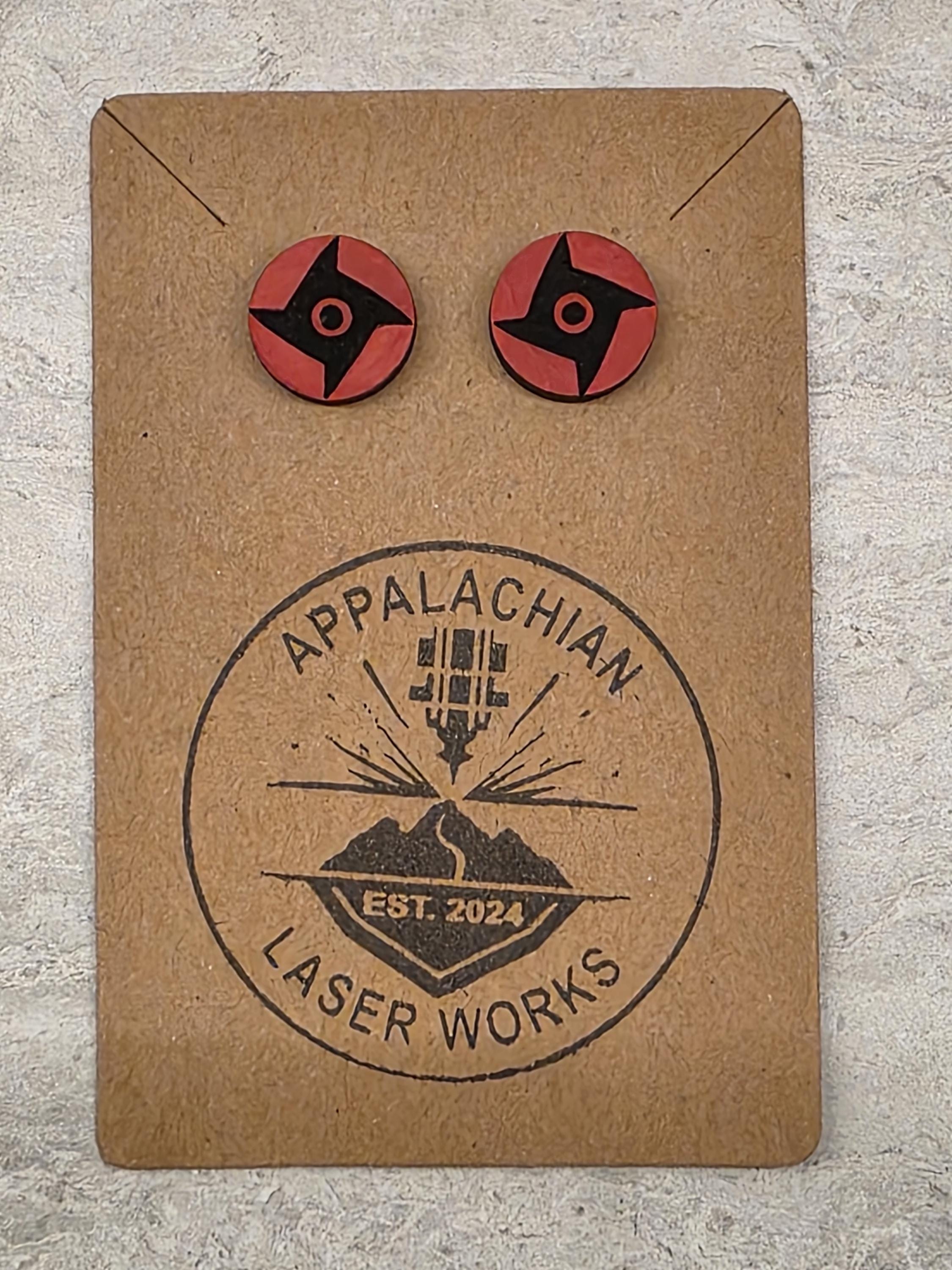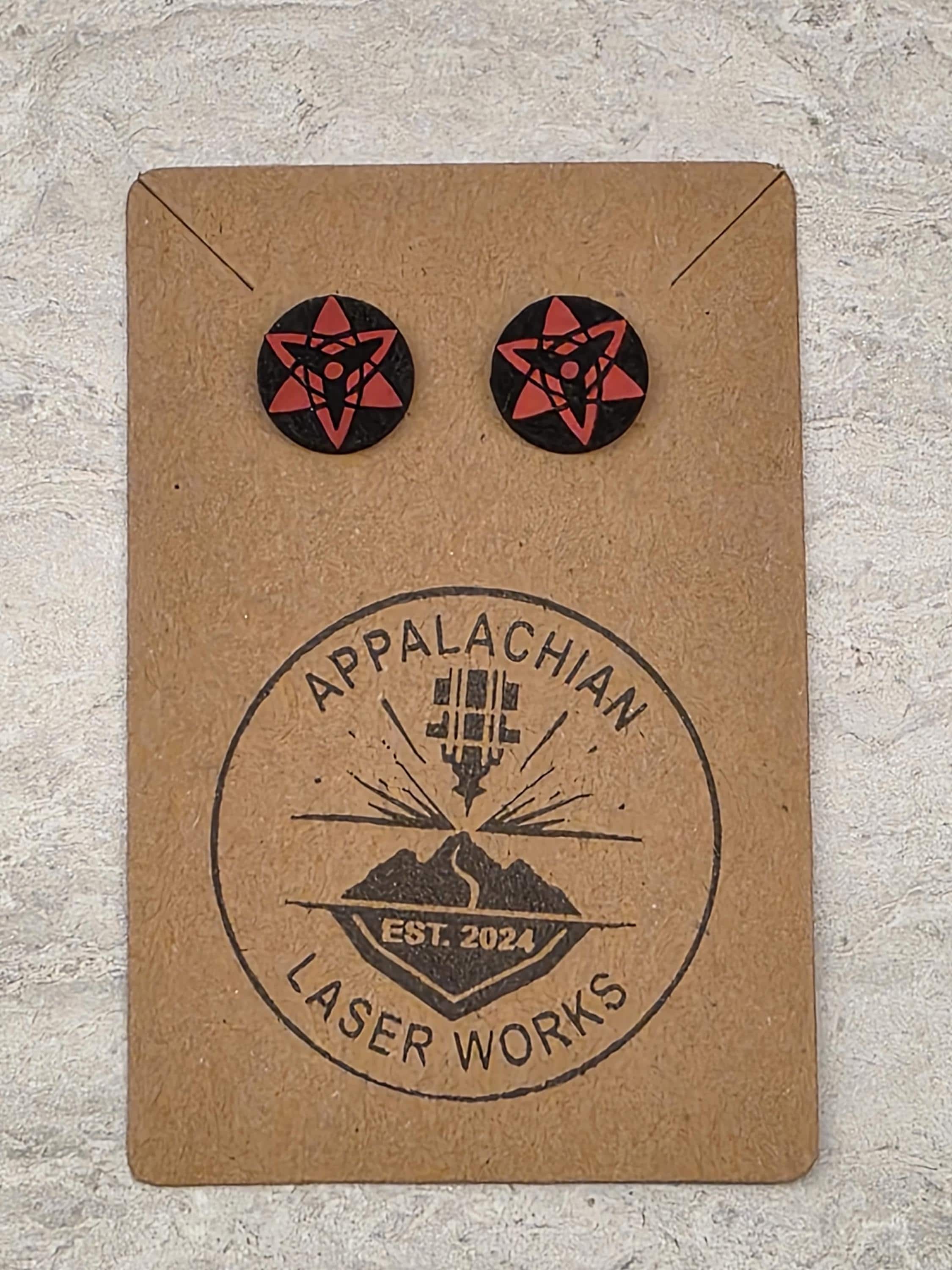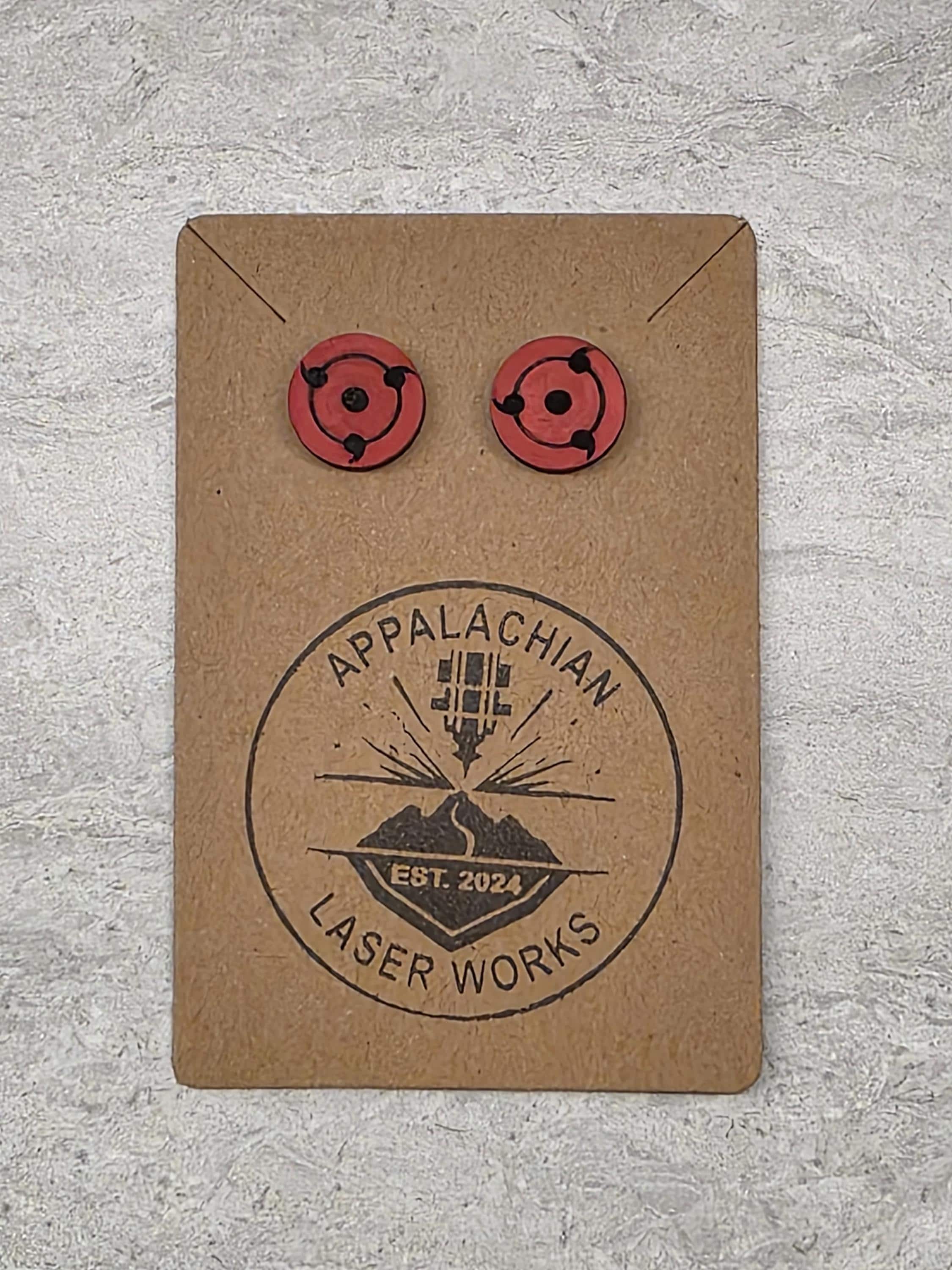 Channel your inner Uchiha with these breathtaking, completely hand-painted Sharingan earrings laser carved from real wood!